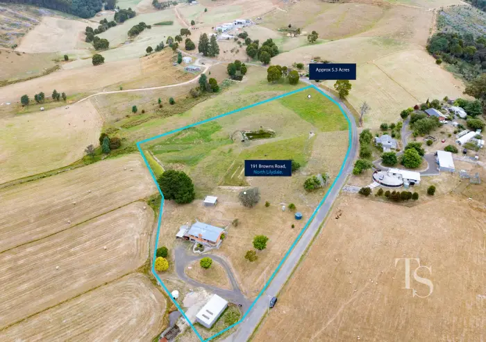 Located in the tranquil rural setting of North Lilydale, Tasmania, 191 Browns Road is a 4-bedroom, 1-bathroom home situated on a 2.42-hectare (approximately 5.97-acre) property.