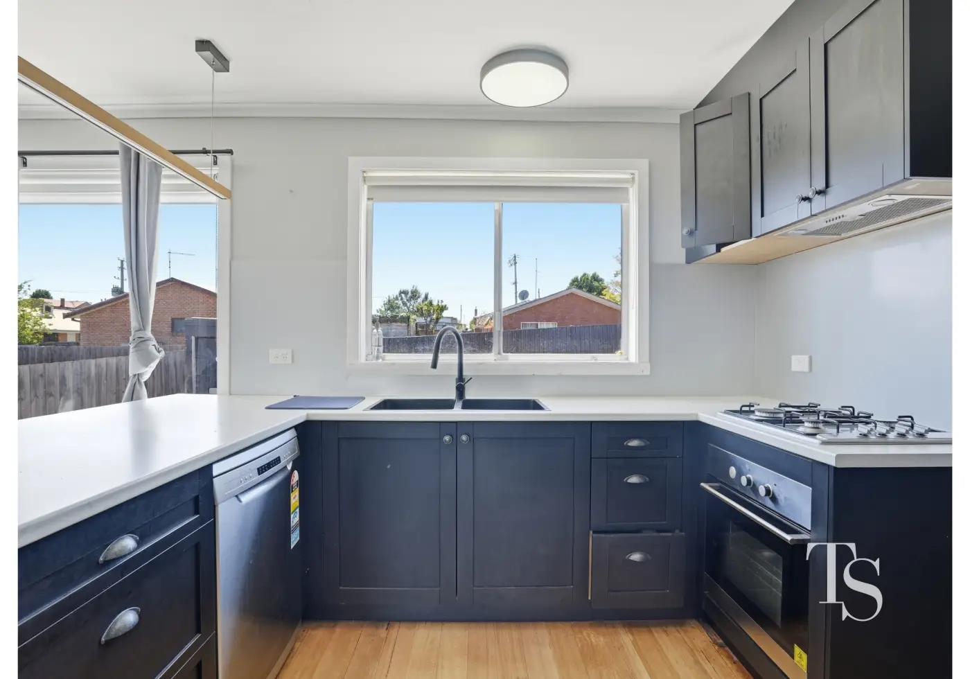 - Renovated kitchen with modern finishes and dishwasher