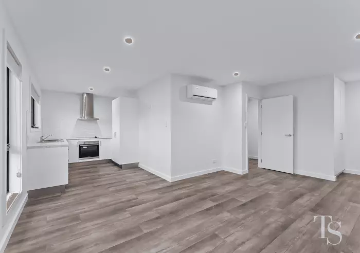 - Open-plan kitchen, dining, and living with natural light